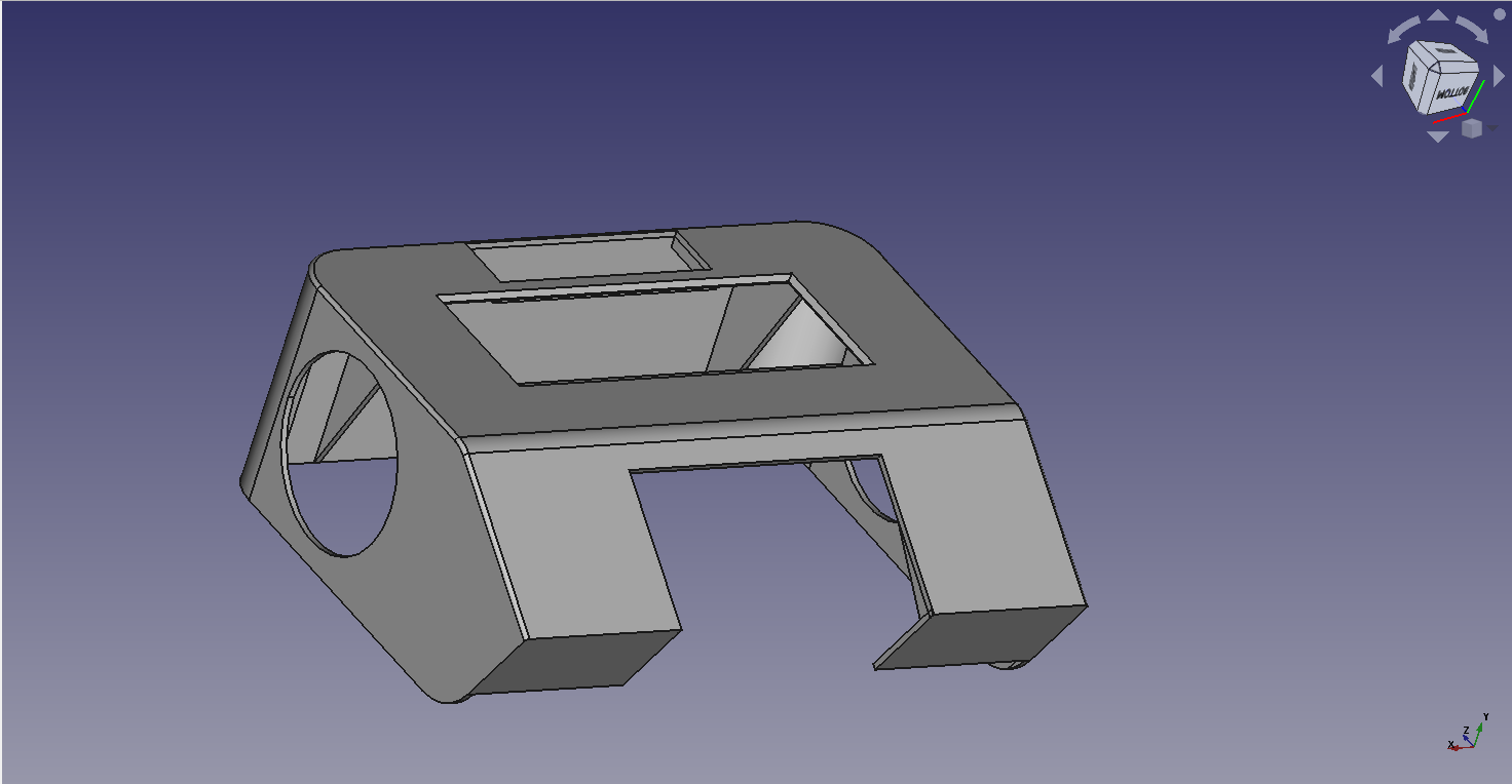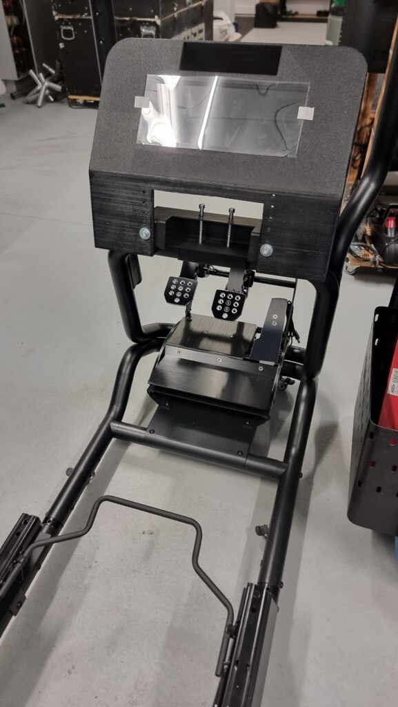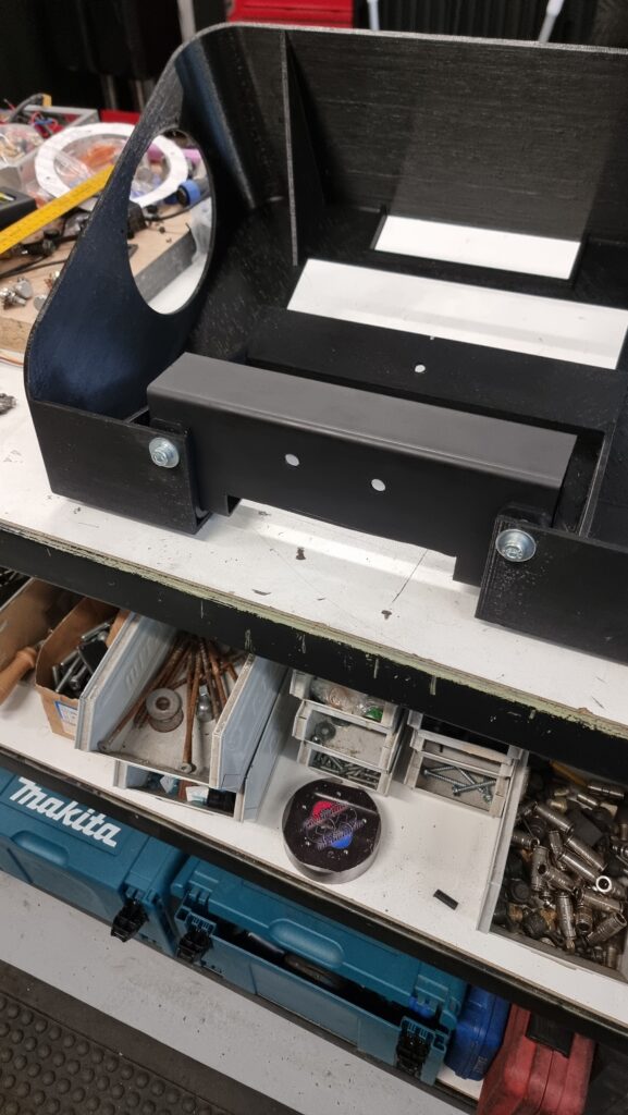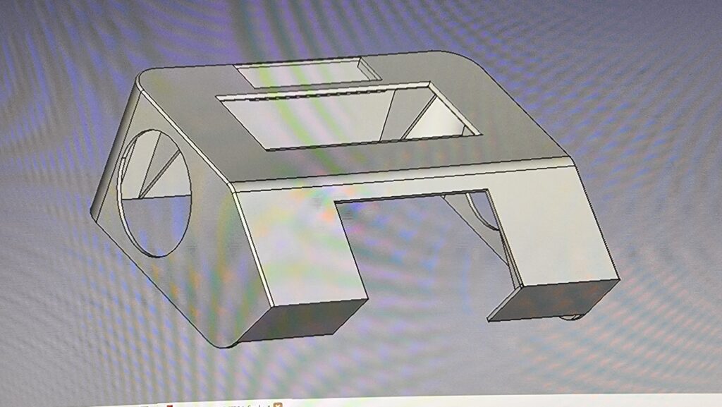 This digital model serves as the basis for a 3D-printed part, giving us a ready-to-install dashboard. While the final part is being printed or manufactured, we begin work on the mounting bracket that will connect the dashboard to the main simulator frame.