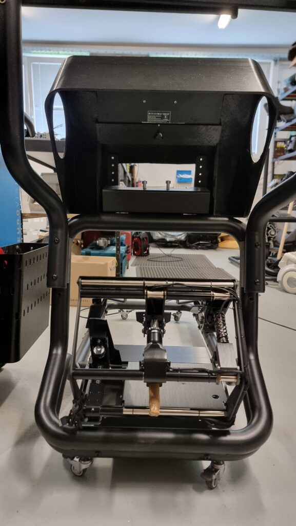Next, we drill the mounting holes – both for attaching the bracket to the frame and for securing the steering wheel base to the dashboard. After this, we assemble the components and do a quick test fit to confirm everything aligns perfectly.