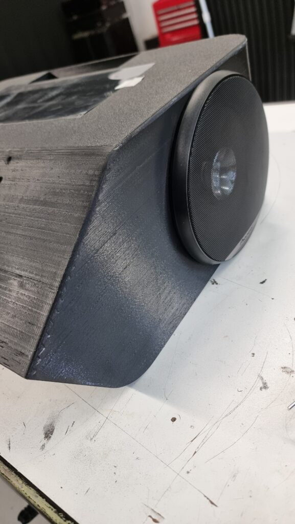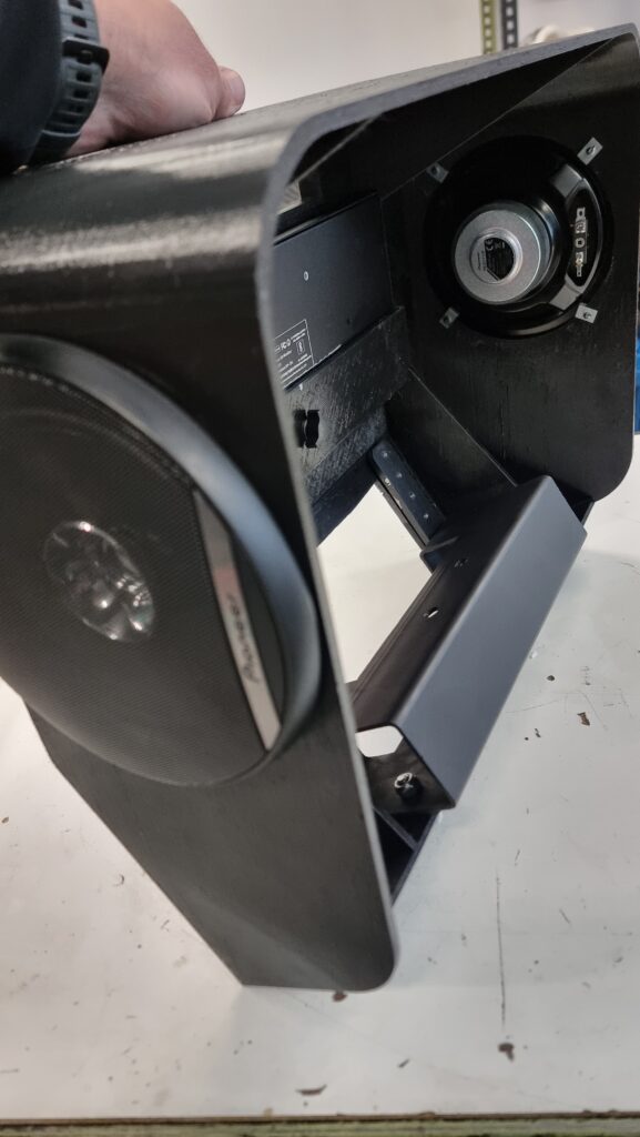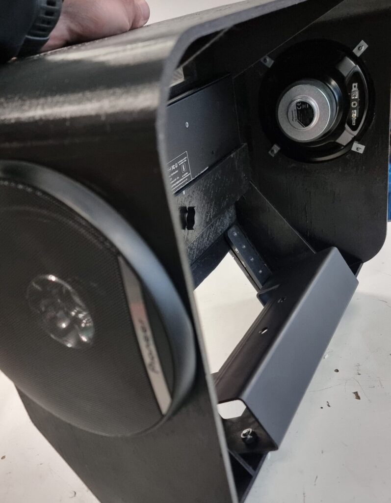 Finally, we install the speakers, which provide engine sounds, alerts, and other immersive audio effects. With that, the dashboard is complete and ready for the next stage of the build.