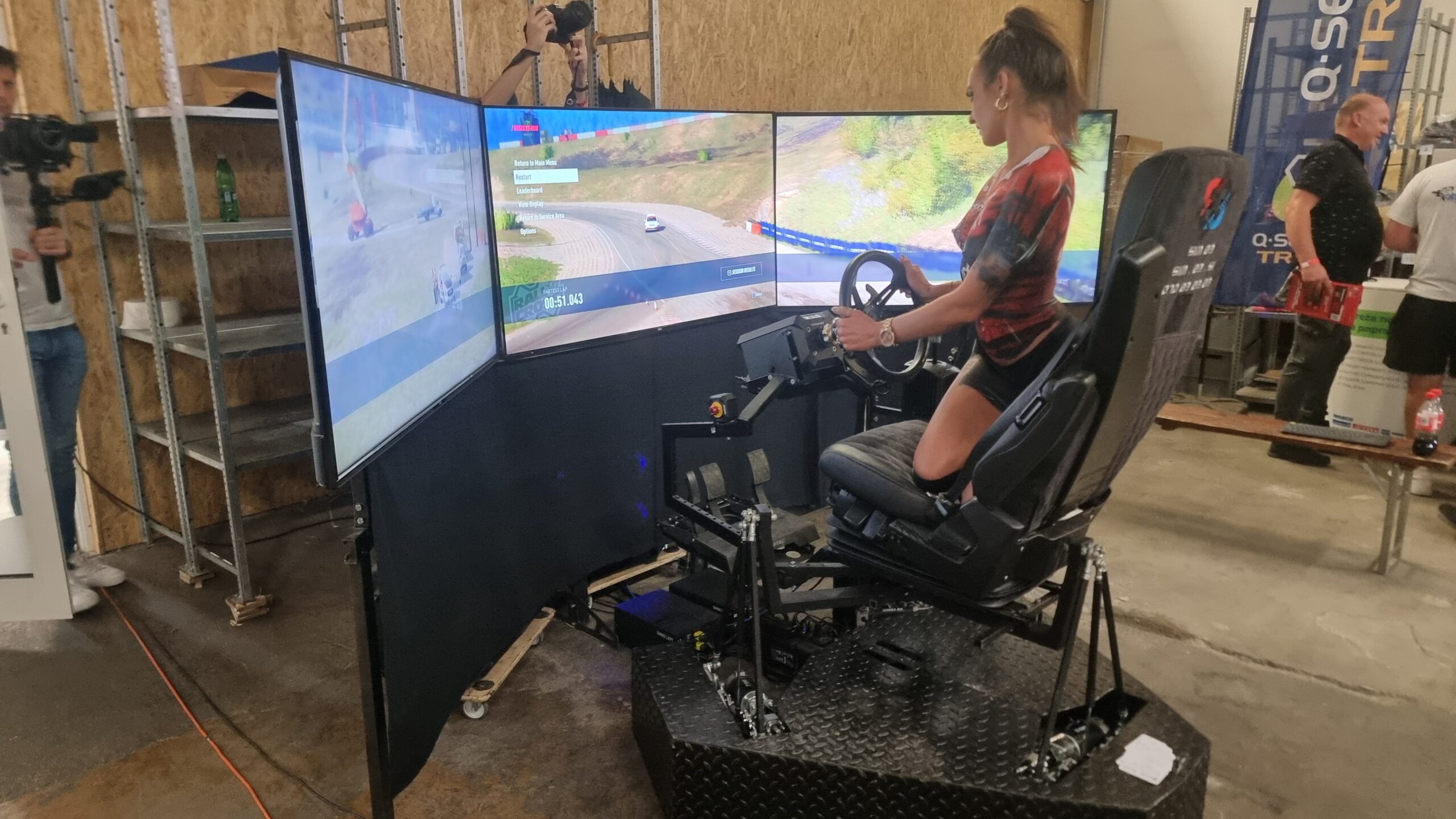 A festive vibe in Ljubljana. Guests most often highlighted the realistic wheel feel, braking stability, and the clarity of the triple-screen setup.